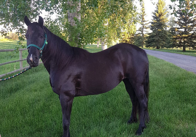 Diva made her way to us in March of 2009 from Missouri. She was in foal and due in April. She arrived on a freezing cold night and she looked very sad. We will never forget her big dark eyes when we met her for the first time. She was underweight and all her nutrients and energy were going to her foal. She delivered a stunning buckskin filly in April. The filly now belongs to a friend and we still get to see her. Since that time Diva has turned into a fantastic riding horse. She has a very calm and laid back personality and she is a very wise horse. She also loves to get attention from people whenever she can. Her velvety black coat and long mane and tail all add to the beauty of this Tennessee Walking horse. We can’t wait to see who she works with and inspires next.