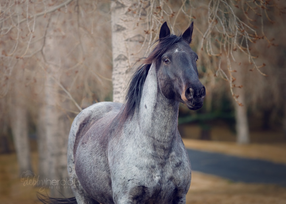 Parker is a lovely blue roan Quarter Horse/Morgan cross from Alberta and is our herd leader. He is a gentle leader and stepped into his role naturally and with no problem. Parker is the newest member of our team and is an excellent teacher due to many of his unfortunate past experiences. Parker came to us as a disconnected horse, so to speak. He is one of the best horses for teaching about boundaries and personal awareness, as he is very clear on his feelings and thoughts about situations and how people are projecting their intentions. We feel Parker was abused and forced into many situations in his past that he was not comfortable with, and that he ended up just going along with it to avoid conflict and abuse. When he arrived he had back problems, shoulder problems and was aloof. After some time we figured out that he was holding all of his tensions from the past experiences in his body which ended up causing his shoulder blades to be pulled out of place and some really tight and sensitive back muscles. After some energy, massage and chiropractic work, Parker has been physically put back together, but his emotional issues are still being worked through. He did not fully trust people when he first came but slowly he is showing that he is becoming more comfortable with letting his guard down and is okay with being looked after and cared for. He truly is a pleasure to work with and we are fortunate that he made his way to us.
